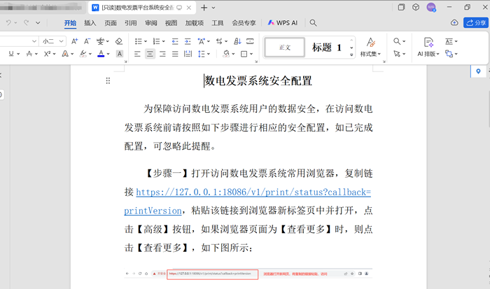 7. 鼠标右键点击任务栏控件小图标,如图 8所示,点击安全设置则自动打开 数电发票平台 系统安全配置说明文档,如图 9所示,点击退出则已启动的控件停止运行。