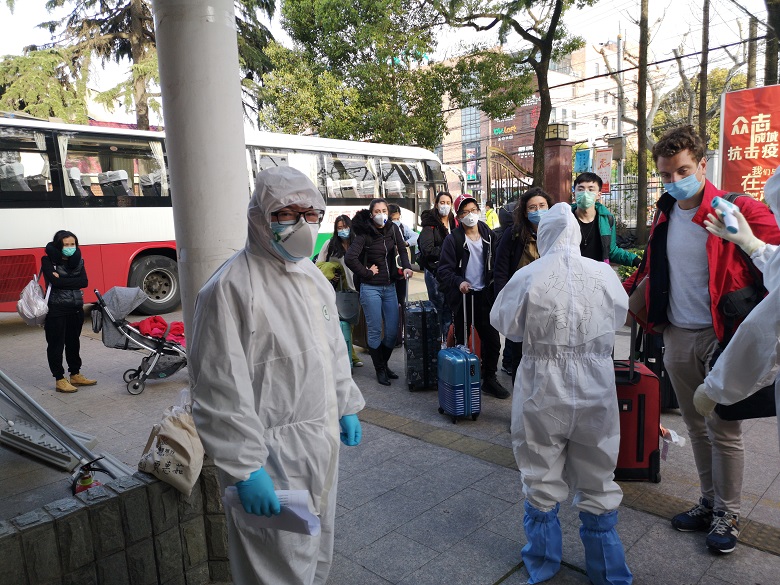 抵达机场后,3名志愿者迅速进入“备战”状态,很快适应了超负荷的志愿工作。王伟龙与王炳楠被分配在转运组,主要任务是协助护送刚下飞机的旅客前往各个集中安置点,接受不同的检查。根据安排,每辆接驳车都需一名志愿者和一名民警同时护送,每次出车送完旅客要进行整车消毒,所以一趟下来短则两个多小时,多则四五个小时。为确保安全,护送的志愿者和民警们全天12个小时按二级防护标准穿戴防护装备,整日都很少喝水,有时碰到吃饭时间因为在护送途中只能忍住饥饿。