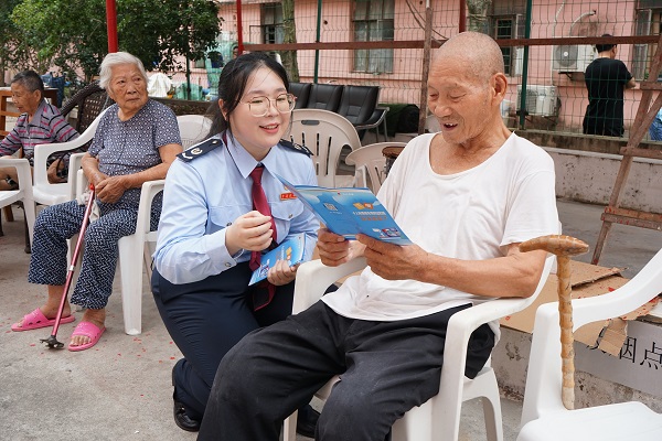 “小姑娘人老好了,陪我们散步、聊天,还带来了好政策,明天我儿子过来我就告诉他。”李爷爷拿着宣传资料开心地说。