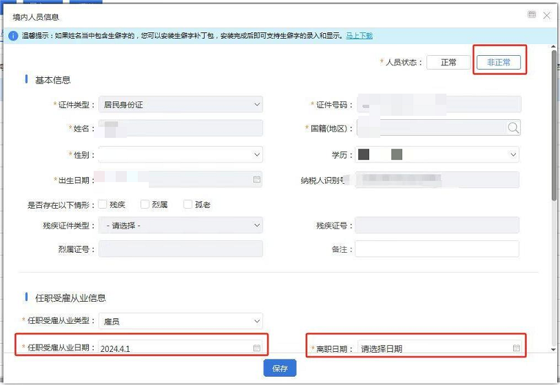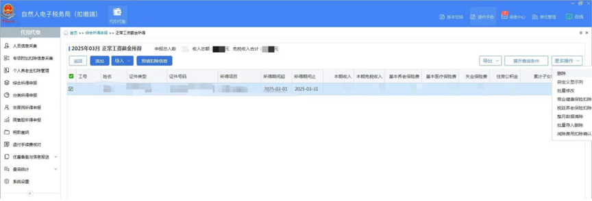 三、发起申诉后,申诉由谁处理?具体流程是怎么样的? 答:您发起的“曾经在职”申诉,会直接推送给您申诉的扣缴单位进行处理。扣缴单位反馈申诉情况属实,则您的申诉成功;扣缴单位反馈申诉情况不属实,则推送至您申诉的扣缴单位主管税务机关办理,税务机关将对扣缴单位调查核实后,进行反馈。 您发起“从未在职”的申诉,将推送至您申诉的扣缴单位主管税务机关办理。任职信息申诉成功后,该单位将不会出现在您的任职受雇信息中;收入纳税明细申诉成功后,申诉的收入记录将不计入您年度汇算的总收入中;被授予办税权限申诉成功后,解除不实的办税权限。 如三类申诉不成功,则相关信息均会保留。如果您认为反馈的信息不实,有其他意见,您可以发起异议申诉复核。 【扣缴义务人版】 扣缴义务人如果发现在自然人电子税务局收到了个税异议申诉的风险提示该如何处理呢?申诉事项主要包括“被收入”“被任职”“被财务”三类,一起来看看具体情况吧。 一、“被收入”类申诉 (一)情况分析: 1.员工在职且确实取得收入:扣缴单位需要向主管税务机关提供情况说明、劳动合同、工资单、银行流水等资料,以证明该员工确实取得收入。税务机关将确认该申诉不属实。 2.员工已离职: (1) 修改员工状态并做离职处理; (2) 删除该员工实际不在职、无收入月份个人所得税申报信息。 提示:如果涉及企业所得税税前扣除金额变化的,还应及时办理企业所得税更正申报并补缴相应税款。 (二)处理流程: 1.登录自然人电子税务局(扣缴端),点击【首页】选择【税款所属月份】,从申诉未在职月份起逐月修改。在左边菜单栏的【综合所得申报】模块点击【申报表报送】。 2.点击【更正申报】,可以看到“申报状态”变为“待申报”。 3.在【综合所得申报】模块,点击【收入及减除填写】,选择所得项目,点击【填写】,进入申报表填写界面。 4.勾选申诉人员,点击【更多操作】,点击【删除】,或者直接双击该申诉人进入修改界面,将本期收入修改为实际收入,点击【保存】。 5.完成人员收入信息修改后,在【综合所得申报】模块,点击【税款计算】,点击【重新计算】,点击【申报表报送】,点击【发送申报】。 二、“被任职”类申诉 (一)情况分析: 1.曾经任职:核查是否在自然人电子税务局中对该员工做离职处理。若人员状态仍为正常,填写离职日期,修改为“非正常”状态。 2.从未任职: (1)自然人申诉不实:扣缴单位需要向主管税务机关提供情况说明、劳动合同、工资单、银行流水等资料。税务机关将确认该申诉不属实,并把相关情况及时反馈给当事人。 (2)自然人申诉属实:扣缴义务人在自然人电子税务局对该员工做离职处理,离职日期与入职日期保持一致,并将人员状态修改为“非正常”状态。 (二)处理流程: 1.进入自然人电子税务局(扣缴端)中,点击左边菜单栏【人员信息采集】模块,双击该申诉人员,进入修改界面。 (1)确认为已离职人员的:在【人员信息】明细页面,将人员状态修改为“非正常”,填写实际离职日期,点击【保存】。 (2)确认为从未在职的:在【人员信息】明细页面,将人员状态修改为“非正常”,填写离职日期,且与任职受雇从业日期保持一致,点击【保存】。 2.保存后,勾选申诉人员,点击【报送】。