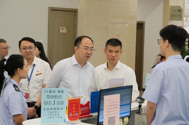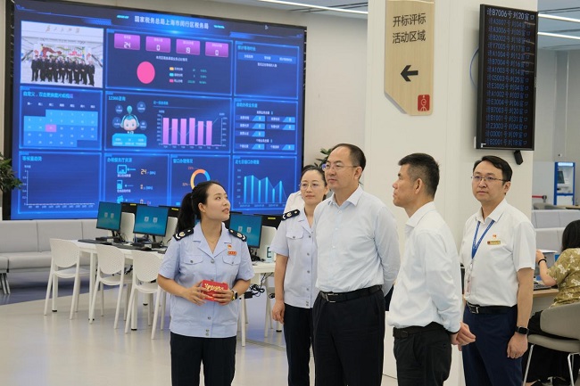 8月1日上午,闵行区委常委、副区长张宇祥赴闵行区税务局第一税务所走访调研,并开展纳税人缴费人“陪办”工作。调研中,宇祥同志沿办税服务厅进厅动线调研导办咨询区、简事快办区、自助办税区、线下办理区及征纳互动区,重点了解“远程虚拟窗口”跨区域协作模式以及闵行税务特色品牌“闵闵工作室”“办不成事”窗口运行情况。随后,全程陪同纳税人完成办理车辆购置税缴纳业务,沉浸式体验“一站式”办税服务流程。