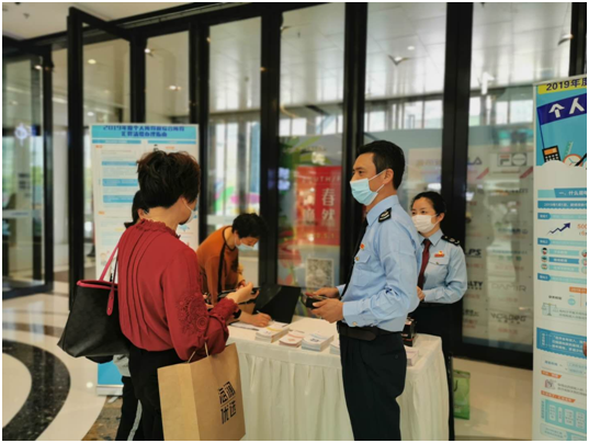 在活动现场还分派了税收宣传册,并通过发放精心准备的小礼品,感谢纳税人对税收工作的支持与理解。纳税人们不约而同对服务队的成员们竖起了大拇指,活动取得了圆满成功。