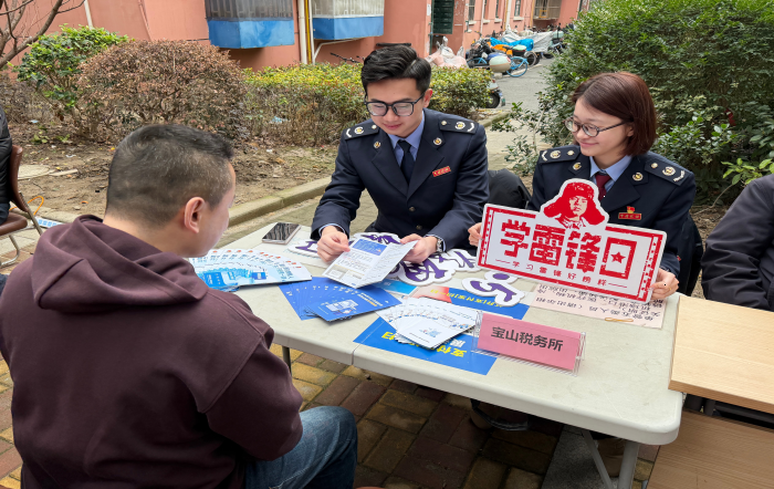 在第63个学雷锋纪念日到来之际,宝山区税务局组织税务干部走进结对共建的泗塘二村社区,参与学雷锋公益摆摊活动,设立税费咨询服务点,将税费政策送到居民家门口,以实际行动践行雷锋精神。