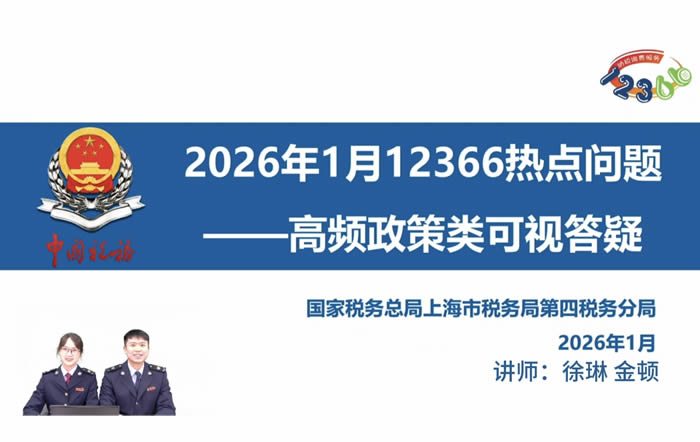 金顿:纳税人朋友们大家好,欢迎来到2026年第1期12366热点问答可视答疑的活动现场,我是来自上海市税务局第四税务分局的金顿。