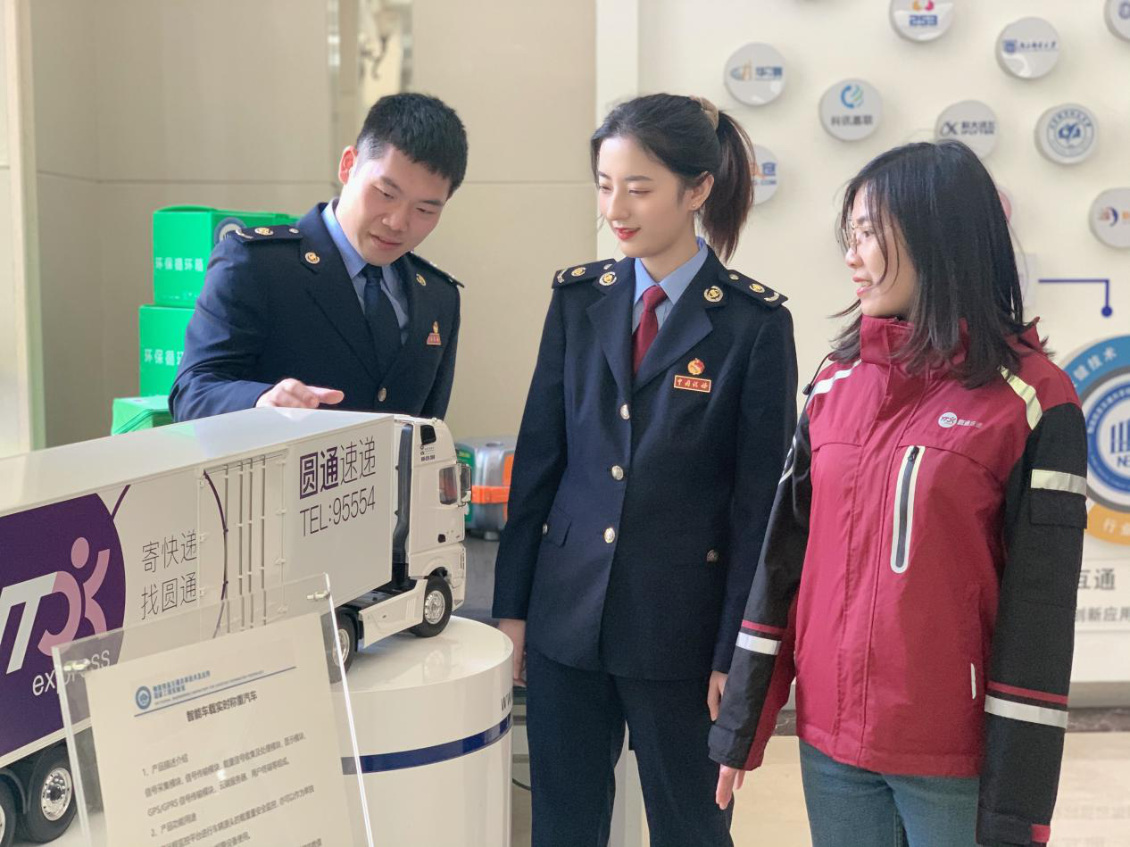 在物流信息互通共享技术及应用国家工程实验室里,税务干部参观了圆通速递的人工智能科普基地,认真倾听企业最新诉求,结合快递行业特性,开展“面对面”座谈会,介绍近期税收优惠政策,宣传便民办税途径。