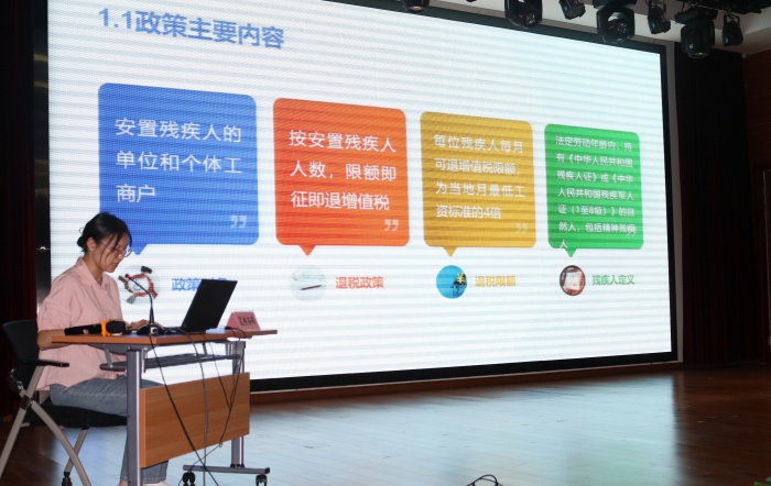 多部门协同发力,政策解读全面覆盖。区残联从政策背景、征缴流程、办理要点等方面,讲解残保金征缴“一件事”;区就业促进中心针对人社就业政策,介绍就业帮扶、岗位补贴、职业技能培训等相关举措;区税务局以分税种讲解的方式,阐述相关的增值税、企业所得税、个人所得税及城镇土地使用税减免等税收优惠政策,助力企业“明政策、会操作、享红利”。