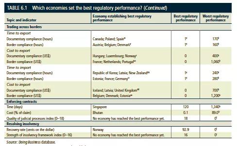 近期的改革让中国成为执行合同效率最高的经济体之一;