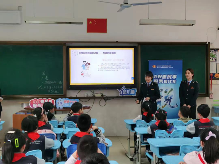 在青浦区,为了上好一堂税法课、讲好一个税收故事,税务青年干部成立了一支校外辅导员队伍,通过制作具有教育性、创意性、儿童性的税收影音作品,将大道理转化为广大少年儿童易于接受的小故事,并以线上课堂的形式播放,受到实验小学二年级一班同学们的欢迎。