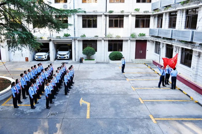 第三稽查局举行庄严的升旗仪式。伴随雄壮的《义勇军进行曲》,五星红旗冉冉升起。税务干部面向国旗行注目礼,向伟大祖国致以崇高的敬意和美好的祝福,并表示要担当有为、真抓实干,奋力续写中国式现代化税务实践的新篇章。