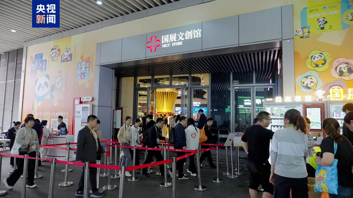 进博文创馆成为本届进博会新设的离境退税商店。在文创馆门口,记者看到大量消费者正在选购商品,其中不乏外国客商身影。本届进博会的多款徽章成为现场购买的热门单品。