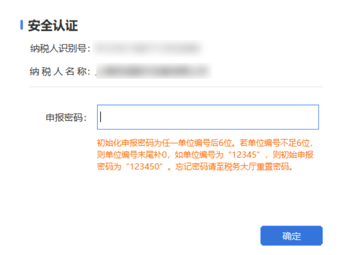 ②系统弹出如下提示,点击“确定”后输入申报密码。