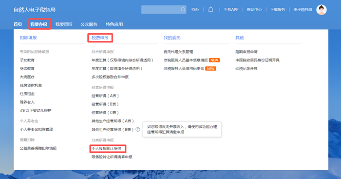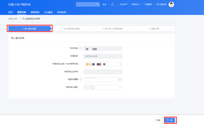 2.转让方如何在网上填报个人股权转让所得资料信息?