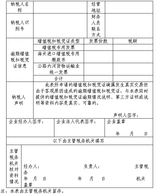 (一)《逾期增值税扣税凭证抵扣申请单》;