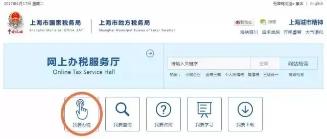 1.登录上海税务网站(shanghai.chinatax.gov.cn),点击“我要办税”;或者在浏览器中直接输入个人网厅链接地址(shanghai.chinatax.gov.cn/zrr)。