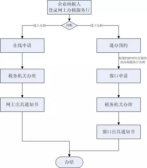 纳税人进入网上办税服务厅后选取所要办理的事项、按照相应事项操作流程受理后,由系统自动转到相应窗口人员后办理完成。