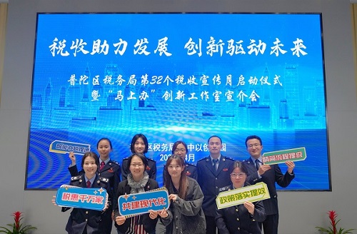 近日,普陀区税务局聚焦“党建业务创新争先”,围绕服务本区“中华武数”科创布局,以“马上办”创新工作室成立一周年为契机,联合中以(上海)创新园,举办以“税收助力发展 创新驱动未来”为主题的普陀区税务局第32个税收宣传月启动仪式暨“马上办”创新工作室宣介会。