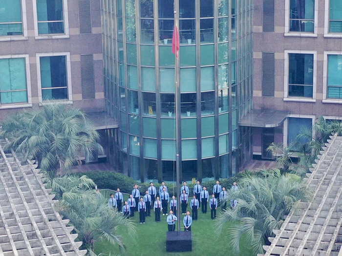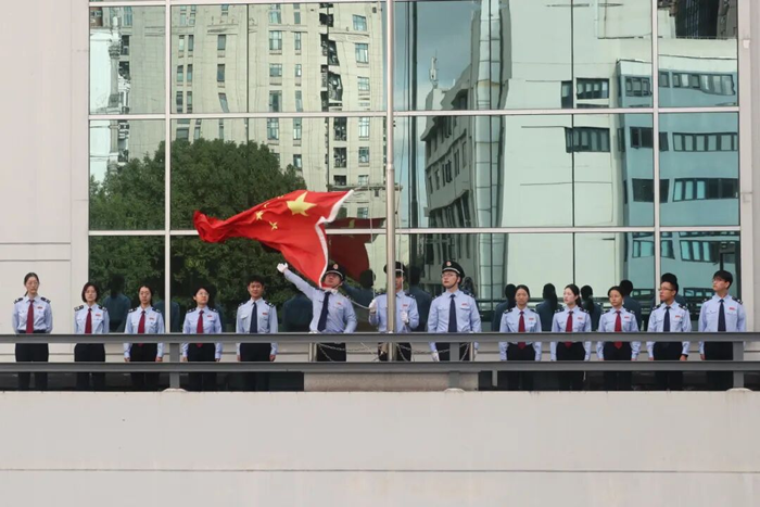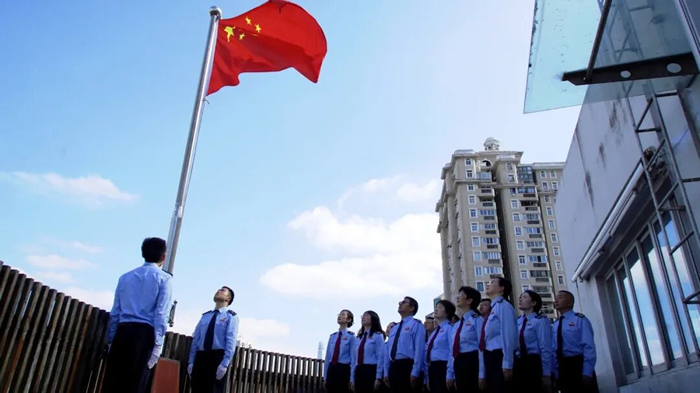 浦东新区税务局举行庄严的升国旗仪式,庆祝中华人民共和国成立76周年。税务干部们面向国旗,高唱国歌,以一如既往的勇毅与热情,积极助力浦东新区打造社会主义现代化建设引领区,为区域高质量发展贡献坚实的税务力量。