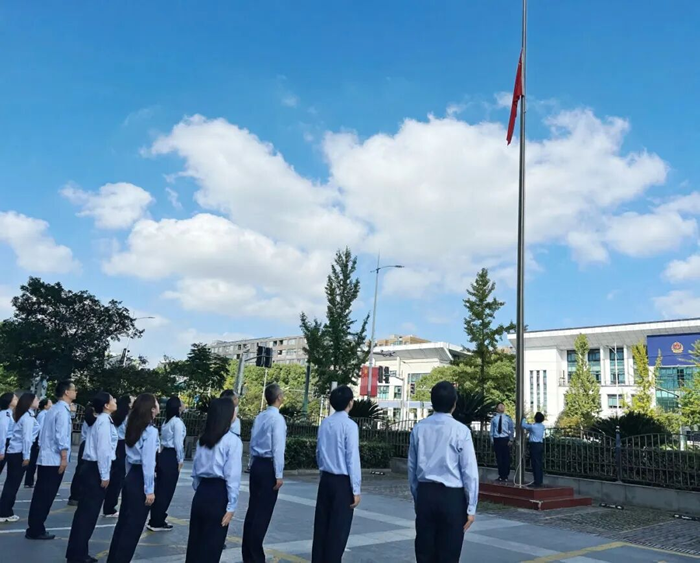 闵行区税务局举行升国旗仪式。伴随着《义勇军进行曲》的响起,鲜艳的五星红旗冉冉升起。税务干部向国旗行注目礼,齐声高唱国歌,表达对祖国的无限热爱,并祝愿祖国繁荣昌盛。全体税务干部将牢记使命、实干争先,在谱写中国式现代化闵行税务新实践中挺膺担当。