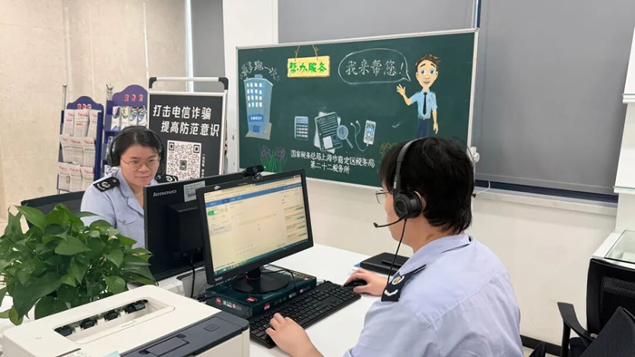 嘉定区税务局征纳互动坐席人员元气满满,以热情高效的服务接待每笔咨询,提供线上“一对一”指引,助力纳税人缴费人足不出户解难题。