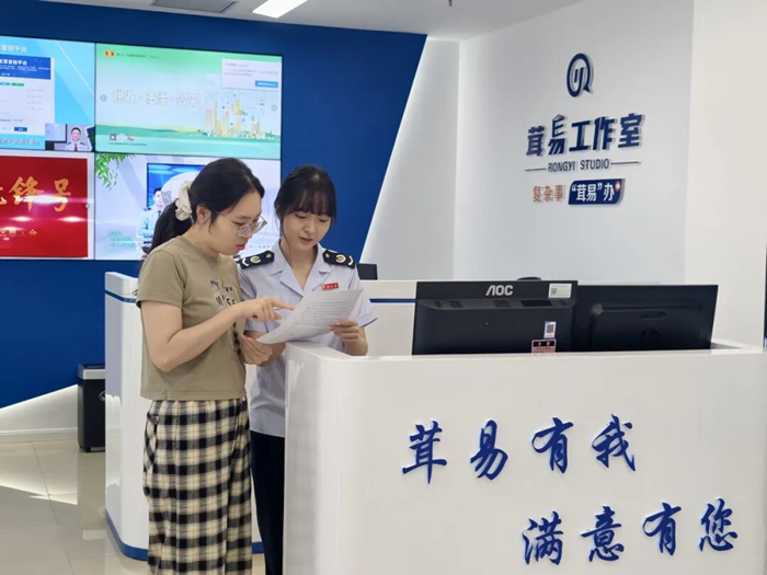 松江区税务局税务干部迅速从节日氛围切换至工作状态,以饱满的热情和专业的态度接待了节后首位前来茸易工作室咨询的纳税人,保障涉税业务办理流程高效顺畅,做到服务质量“分毫不减”。